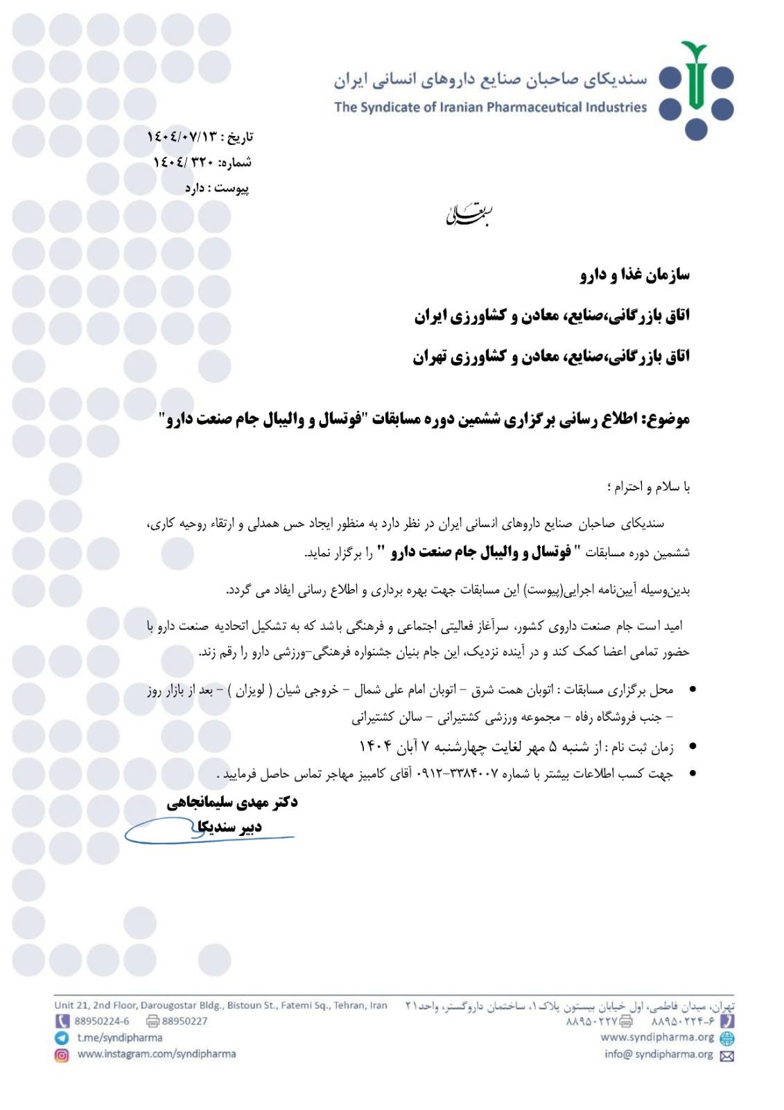 برگزاری ششمین دوره مسابقات فوتسال و والیبال جام صنعت دارو